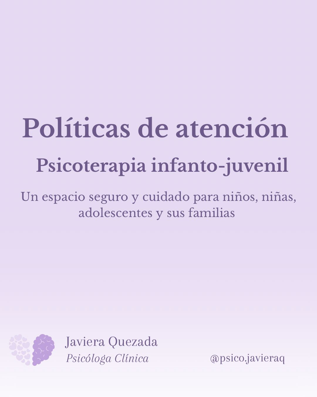 Ofrezco un espacio seguro, respetuoso y de confianza, donde cada niño, niña o adolescente pueda sentirse escuchado/a y acompañado/a en su proceso, trabajando también en conjunto con las familias para favorecer cambios significativos y sostenibles.